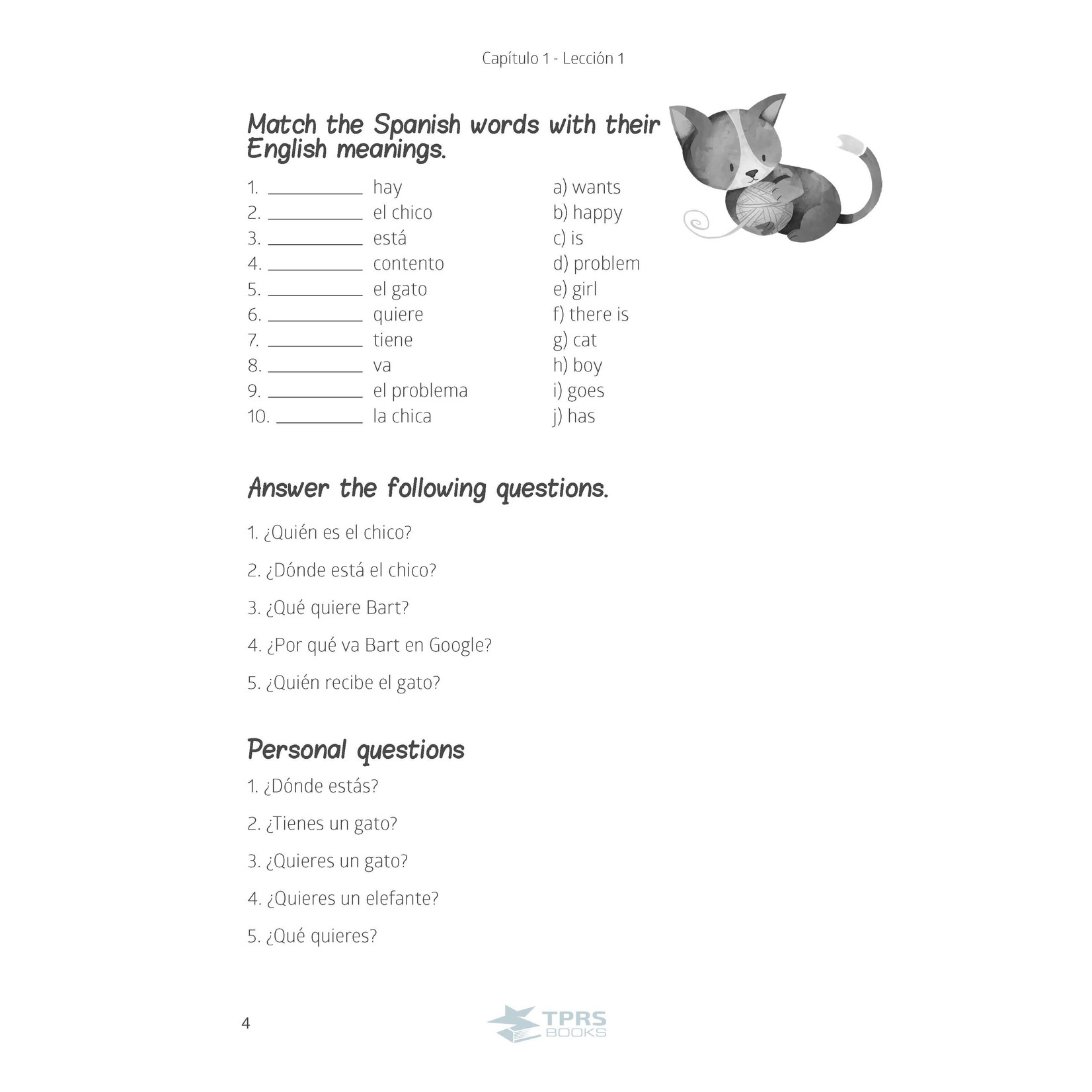 TPRS® is based on the idea that the brain needs an enormous amount of comprehensible input in the language. Make your classes come alive with this collection of over 90 stories that support the oral stories done in class (found in the Teacher Guide). This updated workbook includes a variety of activities for students, guide words, graphics, and a large font for beginning readers.